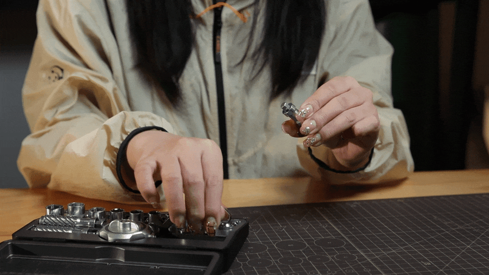 Tiny glasses screw? There's a precision mode with a rotating cap for fingertip control. Seized bolt on a bike? The thing pushes out 30 to 35 N·m of torque and works with sockets.